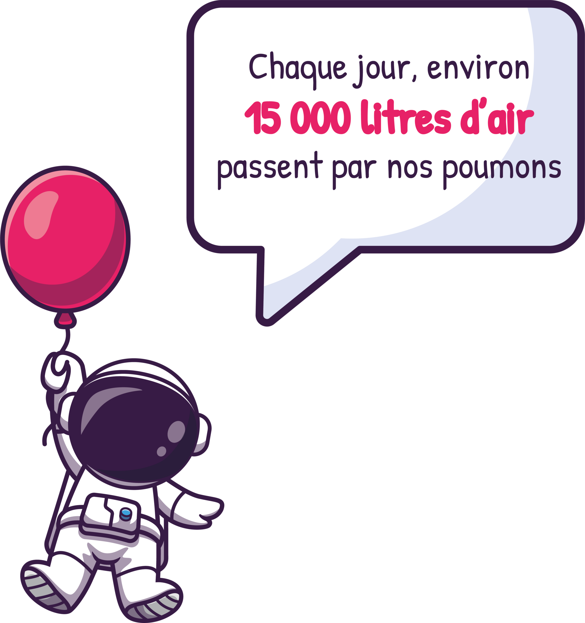 Entre 200 et 250 ballons remplissent le collect'air (1m3). Multipliez ce volume par 15 et vous aurez une idée du volume d'air respiré en une journée!
